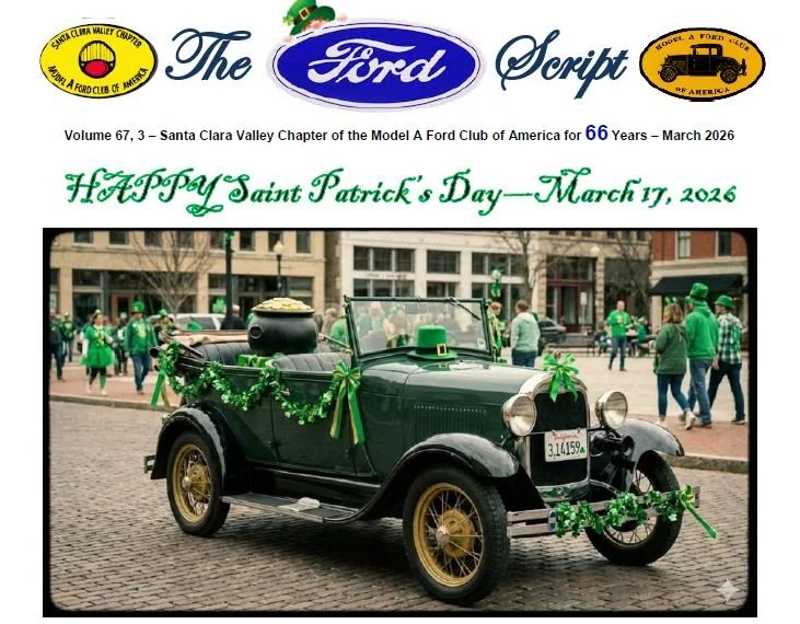 All members are encouraged to submit articles of interest. Permission is granted to other publications to copy material provided acknowledgement is given. E-mail, mail or deliver all newsletter items to the editor by the deadline on the 25th of the month for inclusion in The Ford Script..